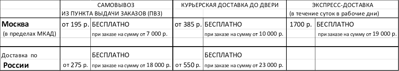 - Доставка по России – от 2 до 7 рабочих дней в зависимости от региона