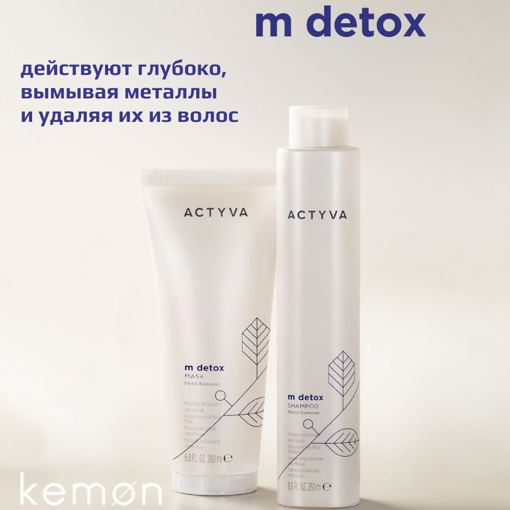 Actyva Metal Detox: Соли тяжелых металлов накапливаются в волосах из-за воздействия воды и загрязнения окружающей среды, делая их тусклыми, слабыми и склонными к ломкости. Средства Actyva m detox действуют глубоко, вымывая металлы и удаляя их из волос, благодаря чему волосы восстанавливают свою силу и красоту.