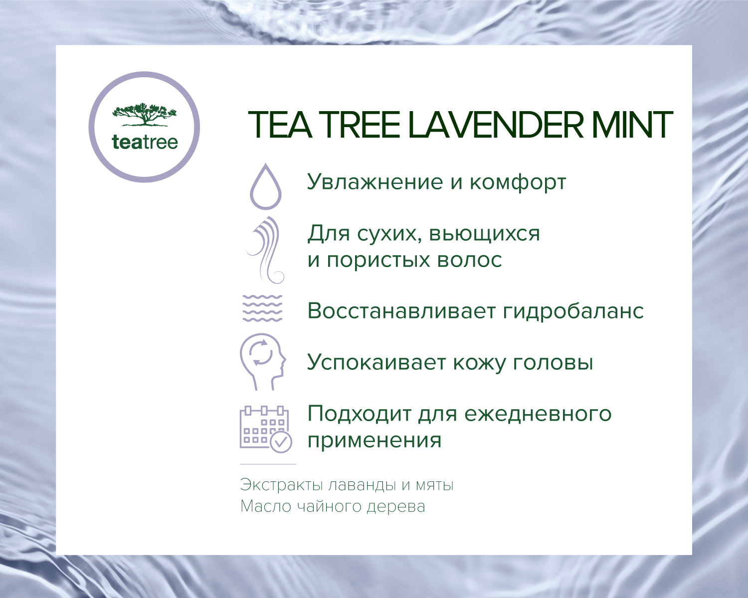 Аминокислотный комплекс, масло австралийского чайного дерева, растительные экстракты.