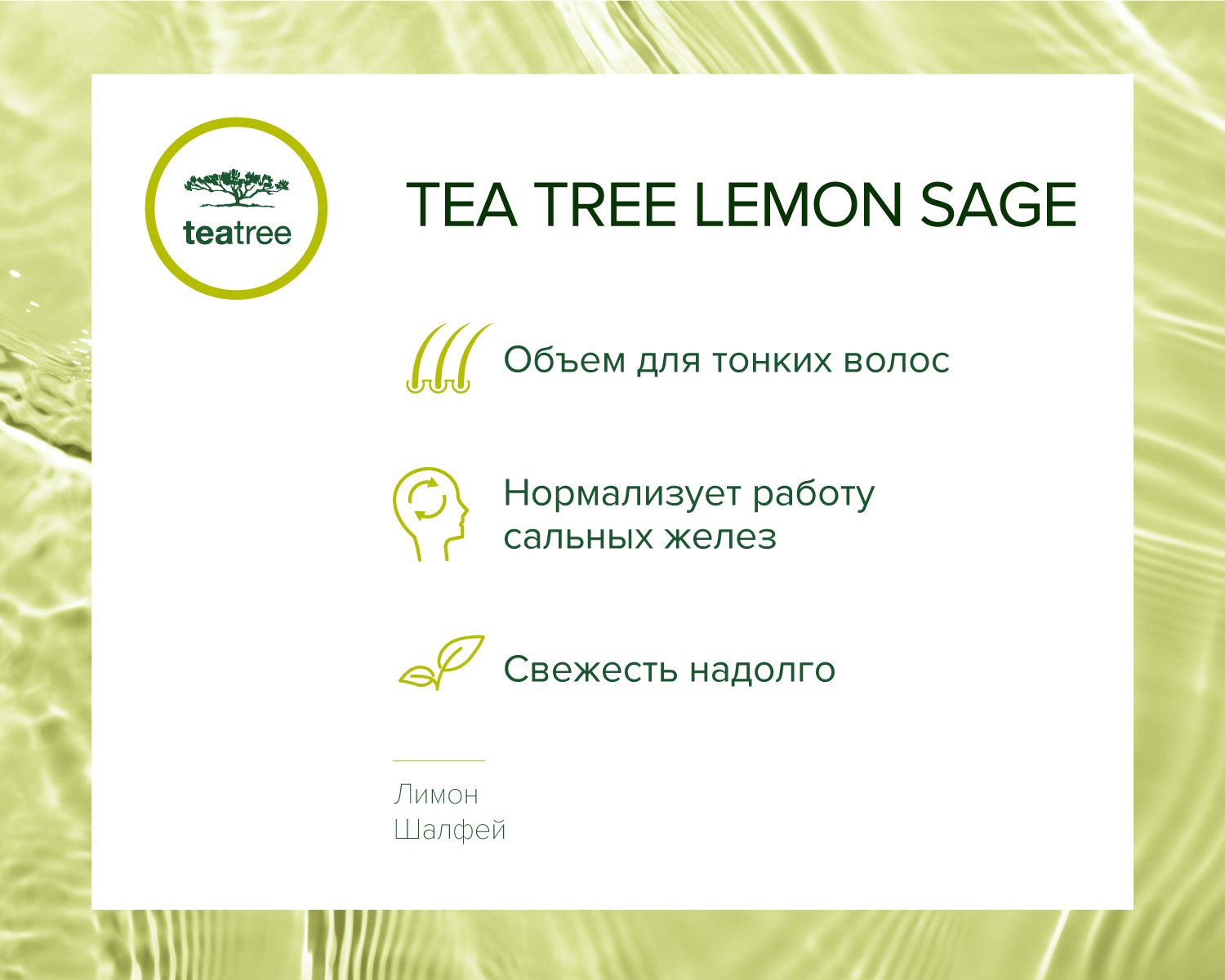 Пантенол, масло австралийского чайного дерева, экстракты лимона и шалфея.