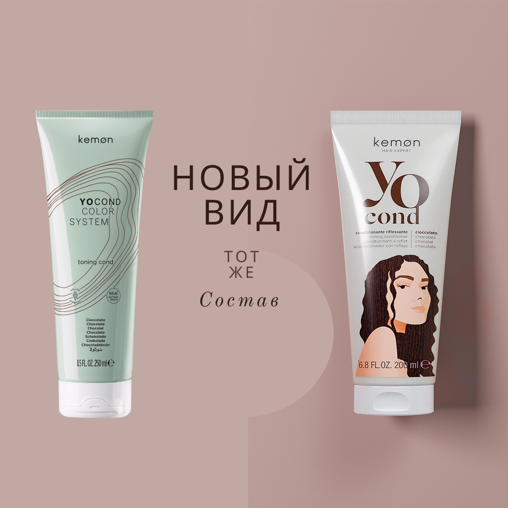 Kemon Кондиционер Шоколад для придания блеска и цвета с кислым pH YO COND, Cioccolato 200ml.